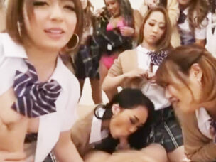 転校したら周りは痴女しかいない天国学園w何度も射精させられて金玉空っぽw巨乳女子校生...